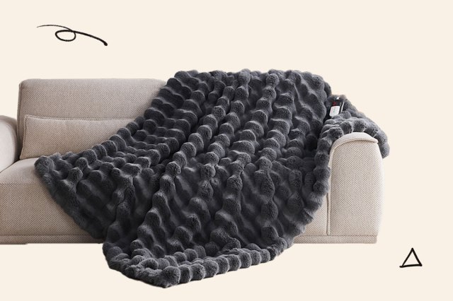 Electric blanket with controller on a sofa