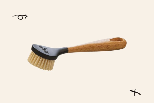 Lodge’s soft-bristled scrub brush is the perfect tool for tackling light staining and loose food debris. Alongside a little dish soap, it can push through greasy residues with ease.