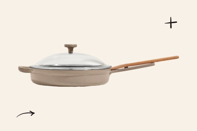 A modern evolution of the standard cast iron pan, Our Place’s hybrid skillet features a glossy cast iron exterior and a matte enameled cook surface, ensuring this pan is compatible with all potential cooktops, including induction. But that’s not all — the patented 8-in-1 design features a built-in resting spot for your cooking utensils, a beechwood spatula, a matching lid, and tonal heat-resistant grippers. With this pan, you can sear, braise, fry, or bake at temperatures up to 500 degrees Fahrenheit with ease.