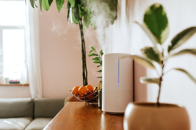 Use a humidifier to maintain an indoor humidity level between 30% and 50%, the ideal level for preventing dry skin and soothing skin conditions like eczema. Keep in mind that higher levels of humidity can increase the risk of mold developing in your home, so keep humidifiers away from carpets and fabric-covered surfaces for best results.