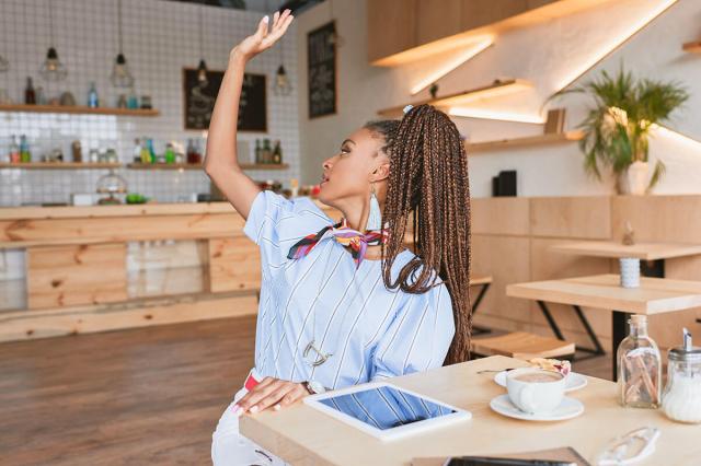 Snapping, clapping, or whistling to get the attention of your server is demeaning and rude, and it’s also annoying to any nearby diners within earshot. For the same reason, you should also never raise your glass and shake around the ice inside if you need a refill. Servers deserve respect. Instead, a simple hand raise or a bit of eye contact will do just fine in getting their attention. Just be patient, as they may be busy tending to other tables.
