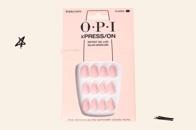 If we could dream up a perfect press-on nail experience, chances are we wouldn’t even come close to the Glamnetic standard. Imagine it and there’s likely a design to suit your wildest dreams. The nails are durable but feel like your own natural set, and can withstand whatever you throw at them, whether that’s water-immersive chores or intense workouts. There are 30 pieces total in a set, with 15 sizes to choose from so you can find that perfect press every time you glue. Much like the OPI xPress/On kit, expect these low-maintenance nails to last two weeks and change. In other words, feel free to cancel that upcoming nail appointment because you’re the expert now.